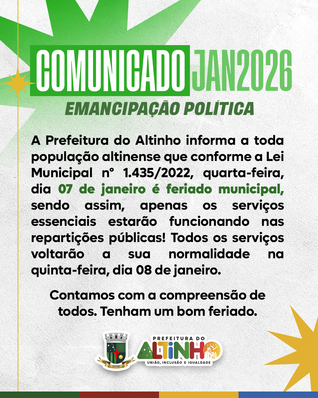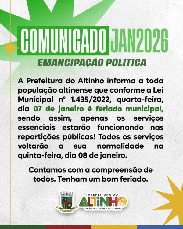 Prefeitura do AltinhoGOVERNO DE UNIÃO, INCLUSÃO E IGUALDADEASCOM – Assessoria de Comunicação, Jornalismo e Publicidade ©2026